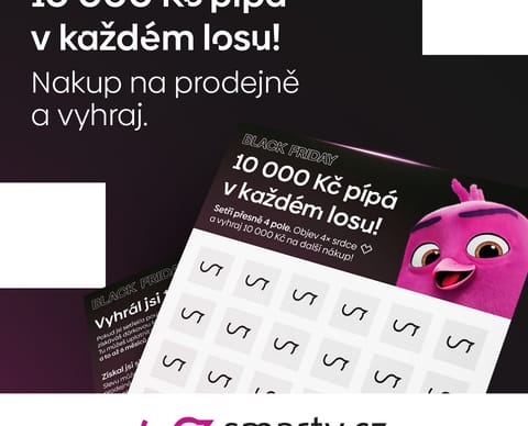 Během Black Friday (1. 11. – 30. 11.) dostaneš na našich prodejnách při nákupu za 1 000 Kč stírací los, který ti může přinést tuhle pohádkovou výhru. Navíc na tebe čeká garantovaná výhra ve druhém poli – od slev na produkty a služby, až po 100% cashback!